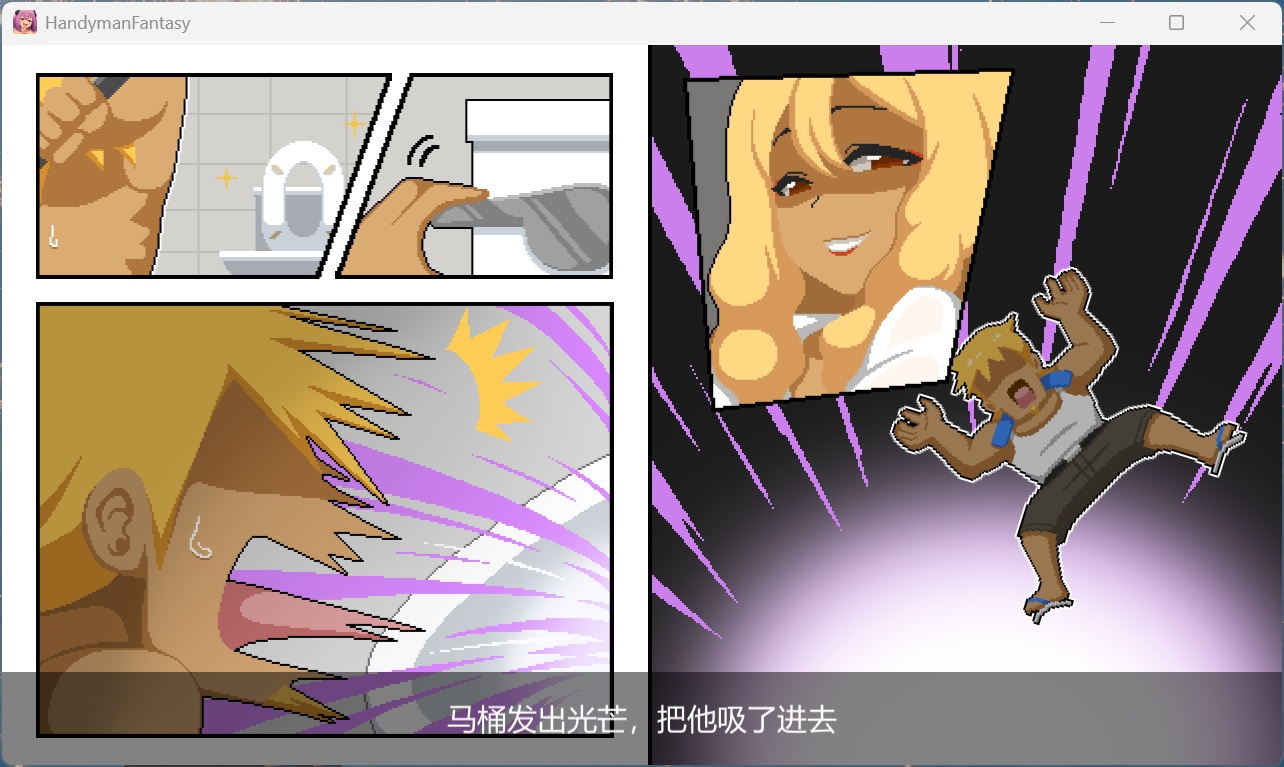 就在他修好了马桶,按下冲水测试时,马桶发出了光芒,将他吸了进去。