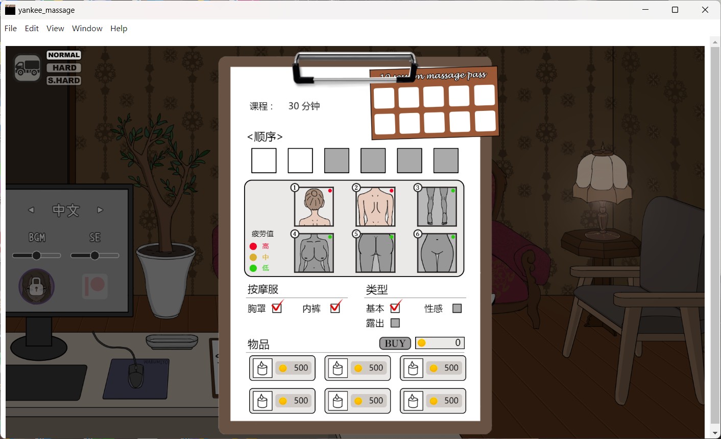 ·使用Live2D技术表现立体且流畅的按摩和女主角的动作。