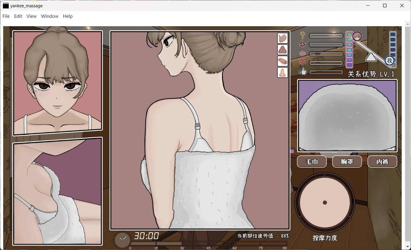 ·调整时机,巧妙移动鼠标,给女主角带来最舒适的按摩体验。