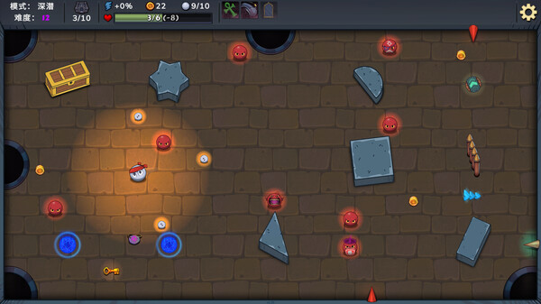 强重复可玩性:程序生成的地牢构造,随机的敌人、障碍物和强化组合在一起,再加上超过100种物品,意味着每一局都会非常不同!