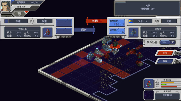 回合与战棋相结合的模式,可更好的控制游戏的节奏和更加轻松的掌握众多影响战场局势的因素。同时类似机战特色的战斗动画,让战斗细节更加的丰富。