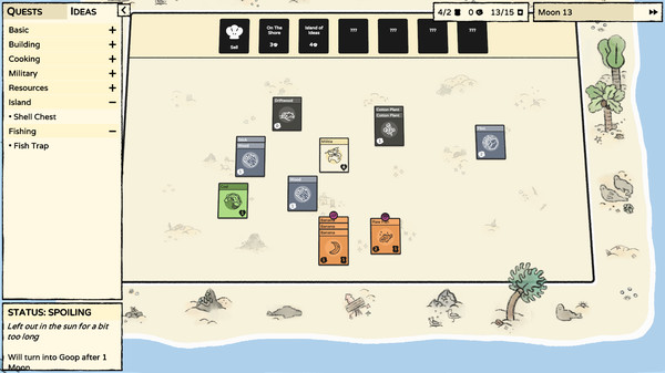 并与各种生物战斗。 例如,将“村民”卡牌拖至“浆果灌木”顶部将会生成“浆果”卡牌,