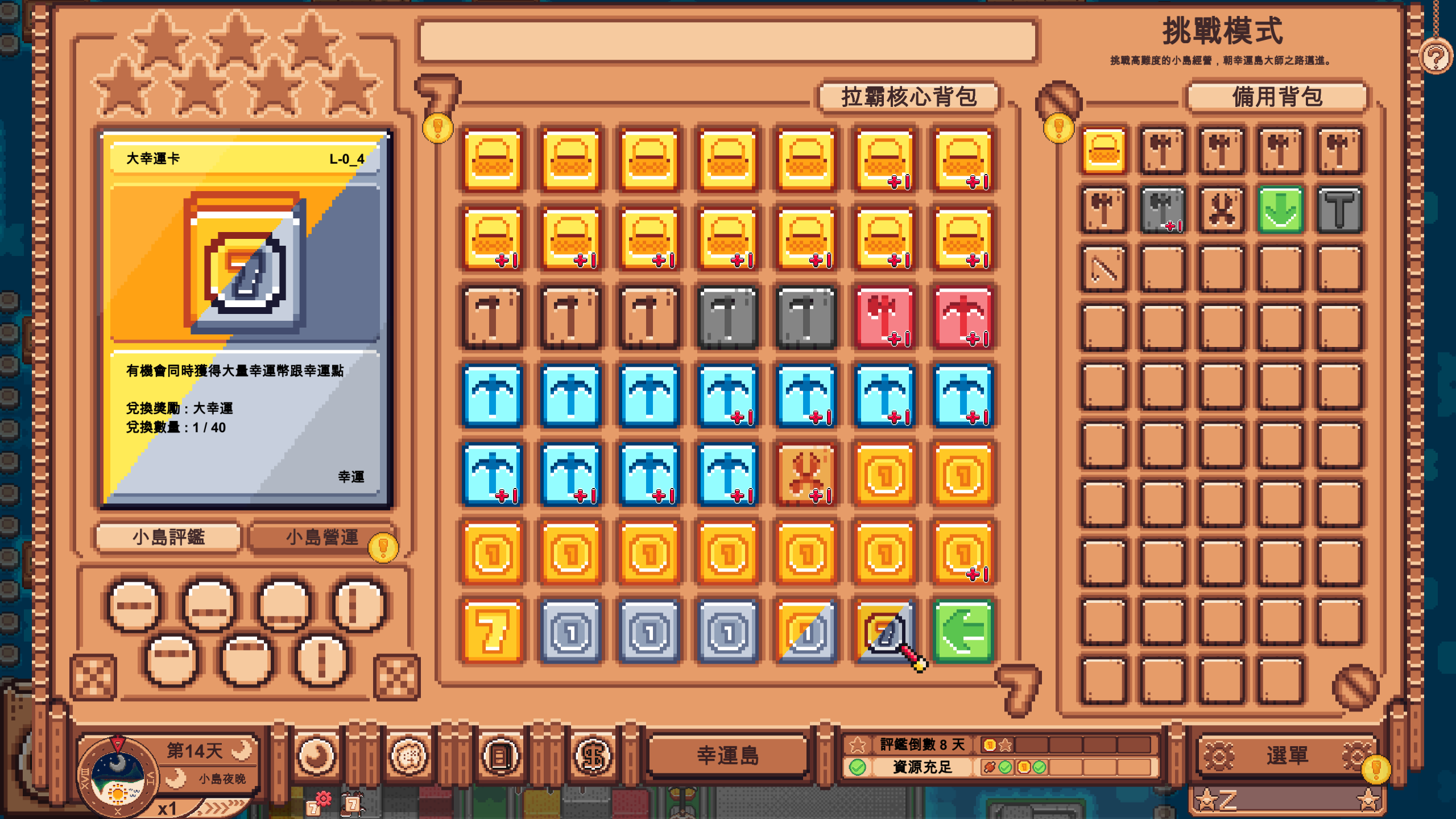 《幸运岛 LUCKY ISLAND》是一款结合岛屿建造经营和拉霸机的轻度Rogue牌组游戏,以可爱的像素风格为特色,让玩家在清新放松的环境中打造专属的小岛。