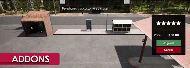 您可以为您的汽车旅馆添加很多创意,例如公用电话和自动售货机,以赚更多钱。或者建一个公交车站来吸引更多的顾客。您甚至可以在您的汽车旅馆区域放置广告以赚取更多现金(如果您具有所需的知名度)。
