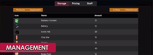 订购产品/设备以及您经营汽车旅馆所需的一切物品。设定商店产品和房间租赁的价格。给你的员工分配任务并确保你支付他们的工资。