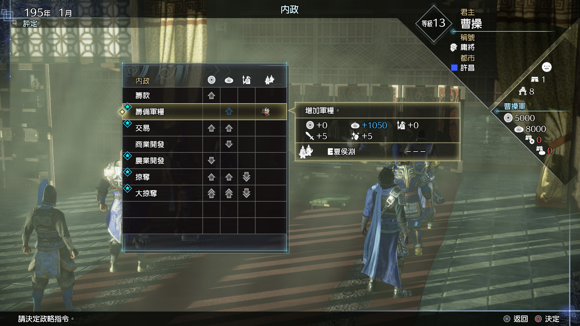 除了透過金策及領內徵集外,也能夠透過掠奪國民等多種方法來達到目的。