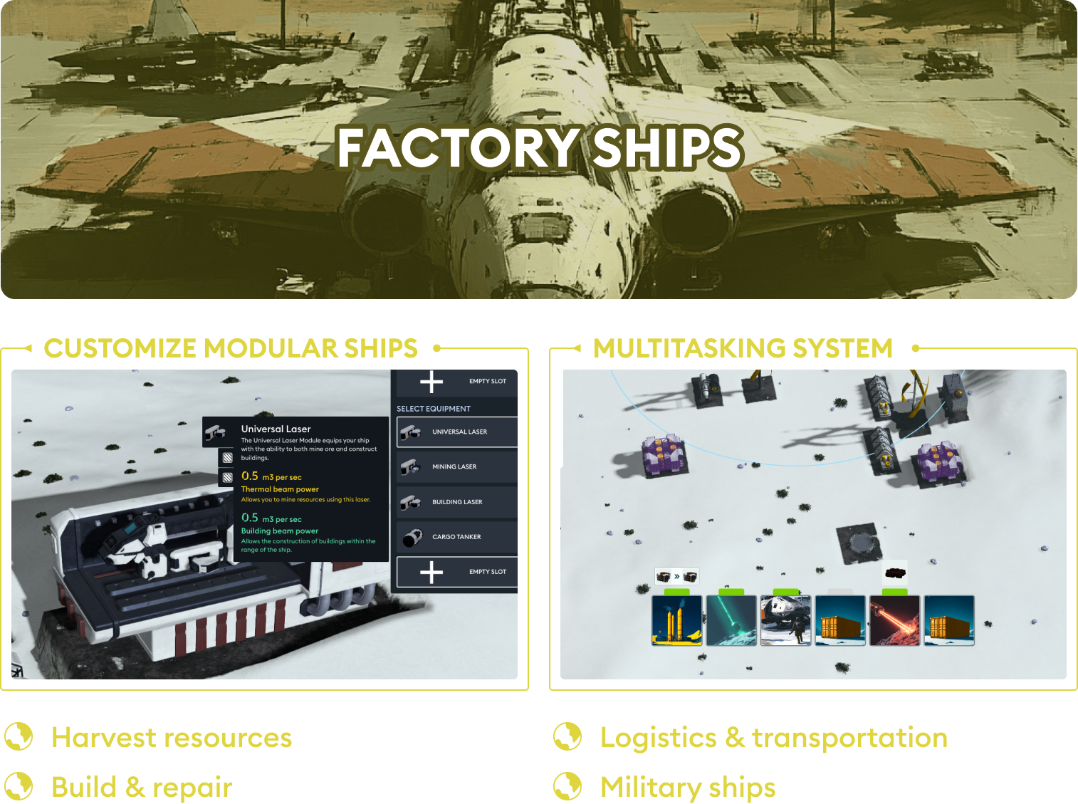 建造新船并结合不同模块——你的行动只受技术进步和可用资源的限制。