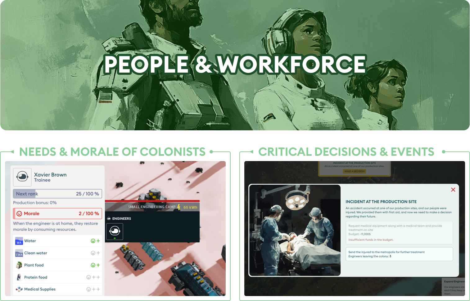 你的人民需要资源,没有资源他们将离开殖民地。维护他们的福祉,因为你的殖民地的生产和进步取决于他们。