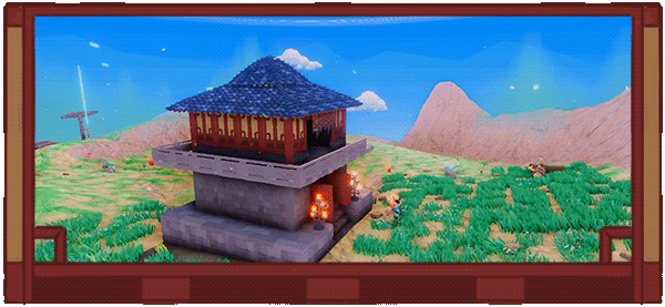 · 建造房屋:使用木头、茅草和竹子等天然材料,打造庇护所或梦想家园。游戏内设有独特的梁木结构建造法,感受中式建筑的榫卯魅力,体验建造无上限。