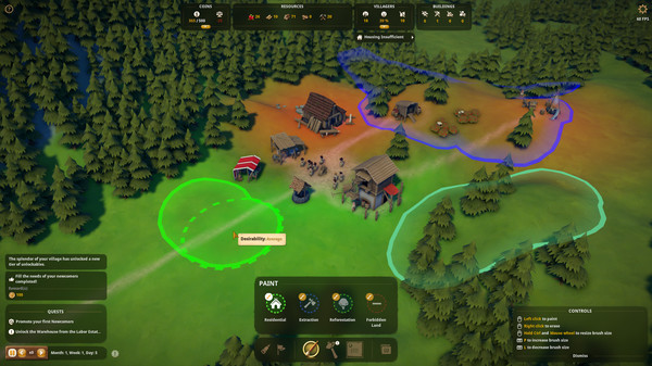 创建无网格和有机蔓延的城市,像当时的中世纪城市一样成长。规划各种工作场所的建设,看着村民们创造自然的道路,建造自己的房屋。直观地画出区域来定义住房、农耕、采集等区域。