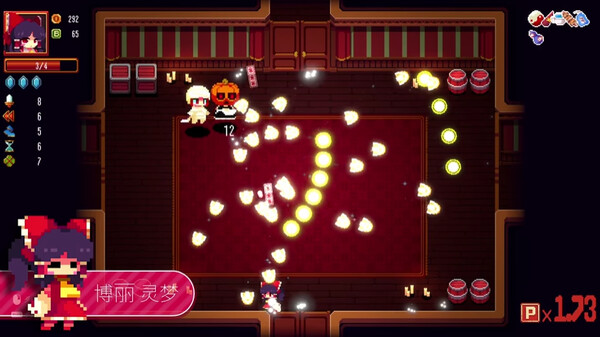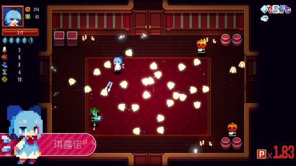 一款弹幕射击类动作游戏。游戏的背景在红魔馆中,幻想乡的居民们开始了一场狂暴的行动!