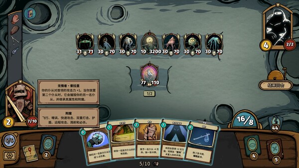 《化月奇旅》是极具挑战性的牌组构筑游戏,富有智慧的构筑策略是战胜对手并最终通关的诀窍。在一轮轮调整中升级牌组并解锁更强力的卡牌和法术,合理规划法力值且审慎使用,小心管理生命值并时时关注,一步一行当谋定而后动。前途漫漫亦困难重重,集圣物,收随从,习法术,战天穹!拿下你的对手,你