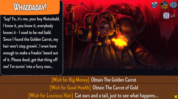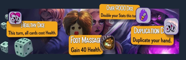 - 掷出多样的骰子让你的回合大翻转!翻倍你的属性,付出鲜血的代价,或者享受一个可爱的足部按摩。