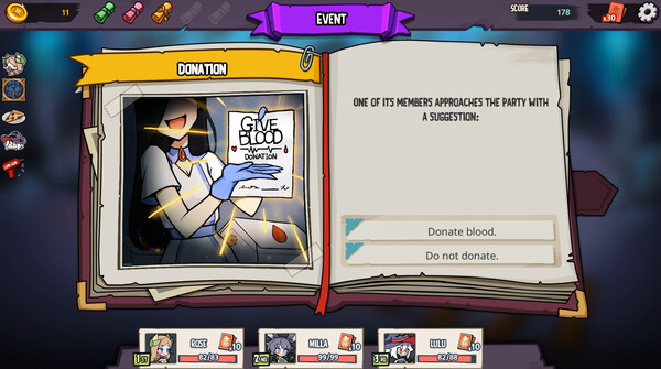 与怪物战斗后获得技能卡牌,从商人处获得珍贵的遗物和卷轴,一点点变强吧。同时,把可怕的学生会成员变成自己的同伴,并肩作战!