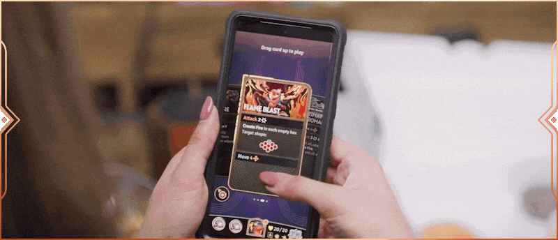 扫描显示器上的二维码,即可下载免费的《Sunderfolk》手机应用程序*(适用于 iOS 和 Android 系统),可以将您的手机或平板电脑变成控制器、卡牌、规则书、物品栏等游戏用品。亲朋好友都可以迅速上手这款游戏,因为他们所需的所有信息都会显示在掌中的手机或平板电脑上。