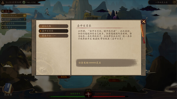 《壶中日月》为你带来酣畅淋漓的打怪体验!派遣弟子进入秘境,与各种妖兽展开激烈战斗。弟子们可以施展华丽的技能,召唤强大的法宝,击败敌人后更有丰厚的奖励掉落!稀有功法、珍贵材料、强力装备,每一次战斗都可能带来惊喜。随着弟子等级的提升,挑战的敌人也会越来越强大,但胜利的回报也更加丰厚。打怪升级、爽快掉宝的玩法,让你在壶中世界中体验到修仙战斗的激情与快感!