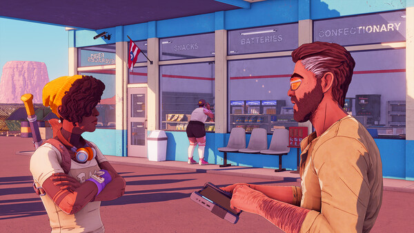 你将在途中穿越虚构历史的美国,在具有标志性的地点停留,接受意想不到的任务,结识各种各样的人物,招募新队员,躲避(或对抗)追杀你的人。你会在高速公路上欣赏到优美的风景,这些风景呈现出了以彩色漫画小说为灵感的艺术风格,使得惊艳的2D插图展现出了3D效果。