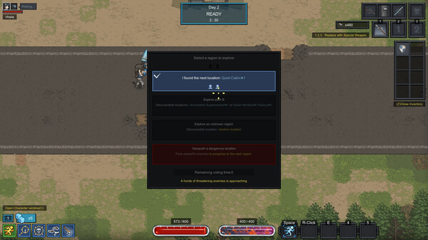 你需要在白天展开探索,从僵尸横行的地区获取物品。每天都有不同的选择,玩家们可以投票决定要探索哪个地区。