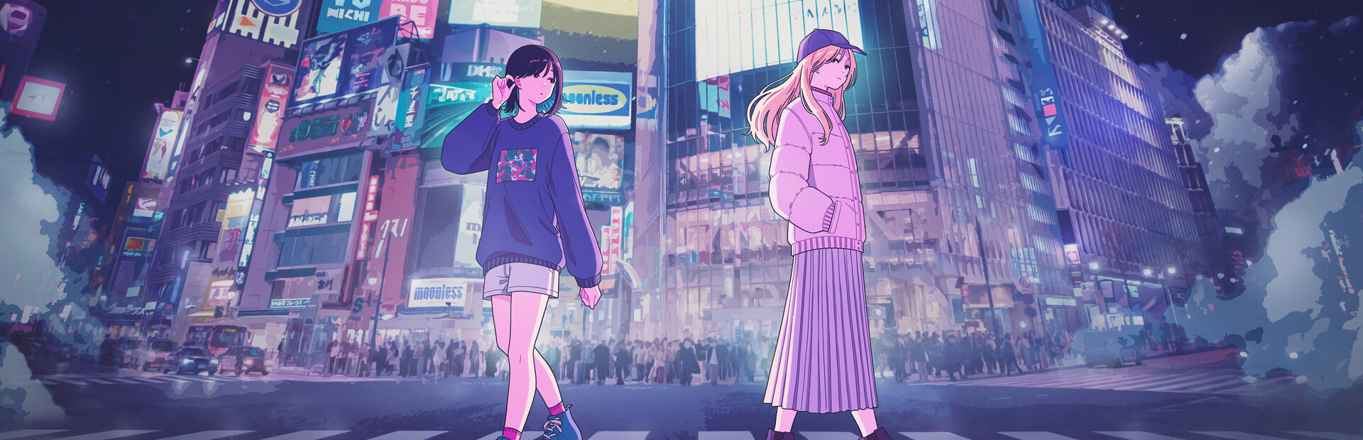 夜幕降临后,是一个别样的世界——在声画互动读物『Moonless Moon』当中,少女将来往于形态各异的世界,对自我展开思索。